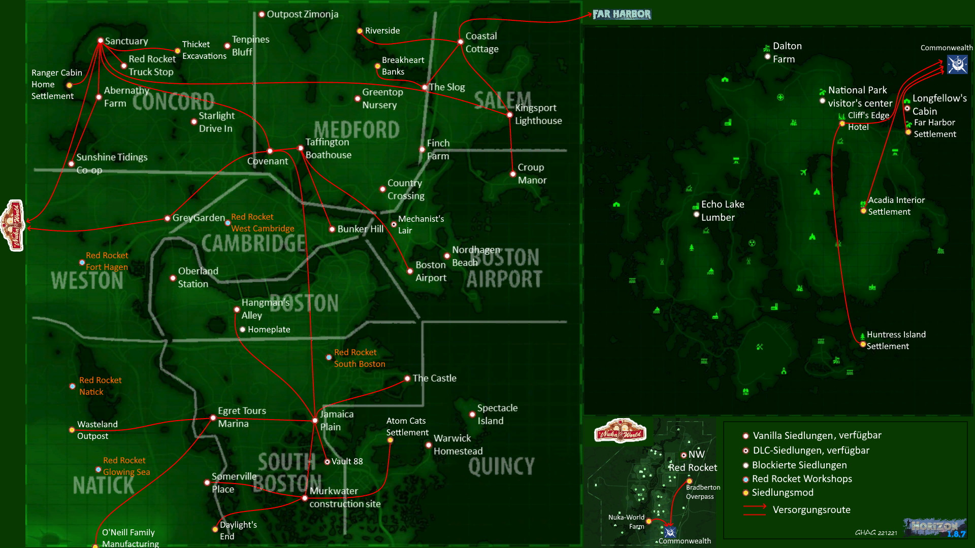 Karte der Siedlungen und Versorgungsrouten