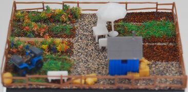 Der Bausatz Schrebergartenset 2 enthält 159 Einzelteile in 10 Farben, Fensterfolie und 1 Bauanleitung für drei Schrebergärten.[1]