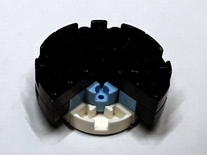 Die Reifengröße bestimmt die Ausmaße des Modells, bei gleichem Maßstab wie ein Standard-Modell lassen sich doppelt so viele Details unterbringen. Das Modell hat eine Größe von 9,6cm x 4,7 cm x 5,8 cm (LxBxH), also etwa Maßstab 1:25, und enthält fast nur hellblaue und weiße Steine.