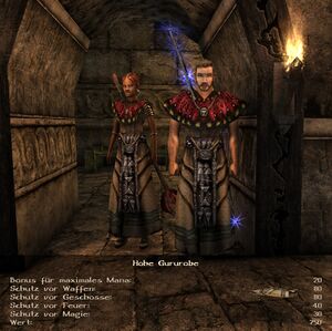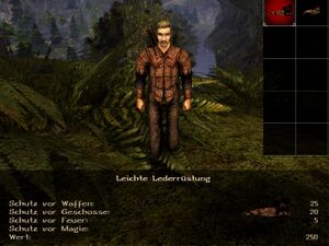 | Zu Lehrbeginn bei Constantino, schwächer als die einfache Lederrüstung. | Hohe Gururobe aus dem ehemaligen Sumpflager, sehr stark. | Kann man beim Händler in der Mine des Banditenlagers kaufen. |